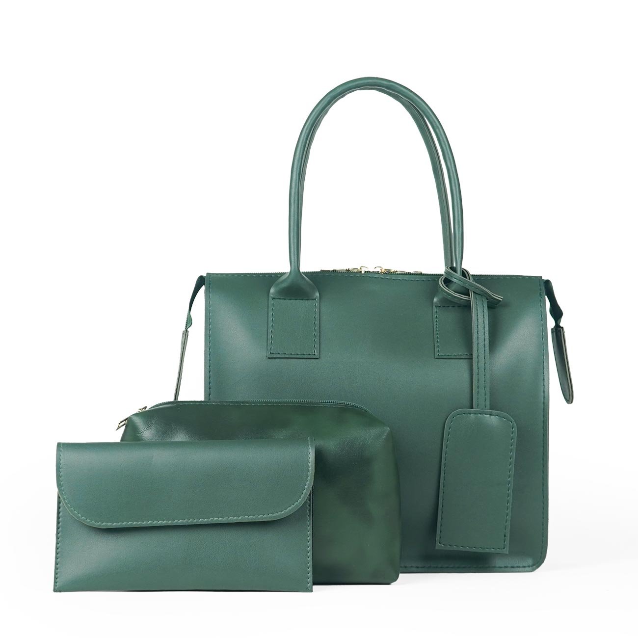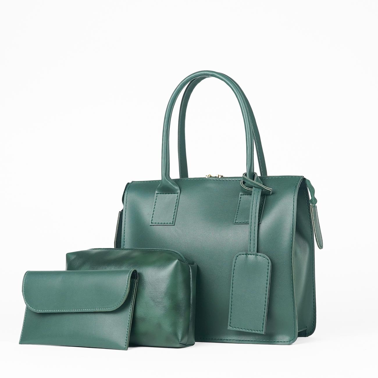The spacious main tote provides ample room for your daily essentials, while the smaller pouch and clutch make it easy to stay organized on the go.